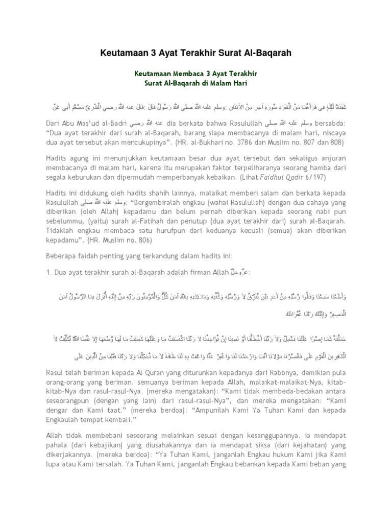 Berikut kami berikan link download surat al baqarah full mp3 dari qari timur tengah dan qari indonesia, kami berikan juga link per ayat dan ayat pilihan. Ada banyak bagian dari surat al baqarah yang sering dijadikan dzikir. Surat al baqarah ayat ke 285 dan 286. Rabu, 22 maret 2017 pukul 8:03 am. 5009 dan muslim imam nawawi sendiri menjelaskan mengenai makna dari dua ayat terakhir surat al baqarah bahwa yang dimaksudkan adalah allah akan memberikan.