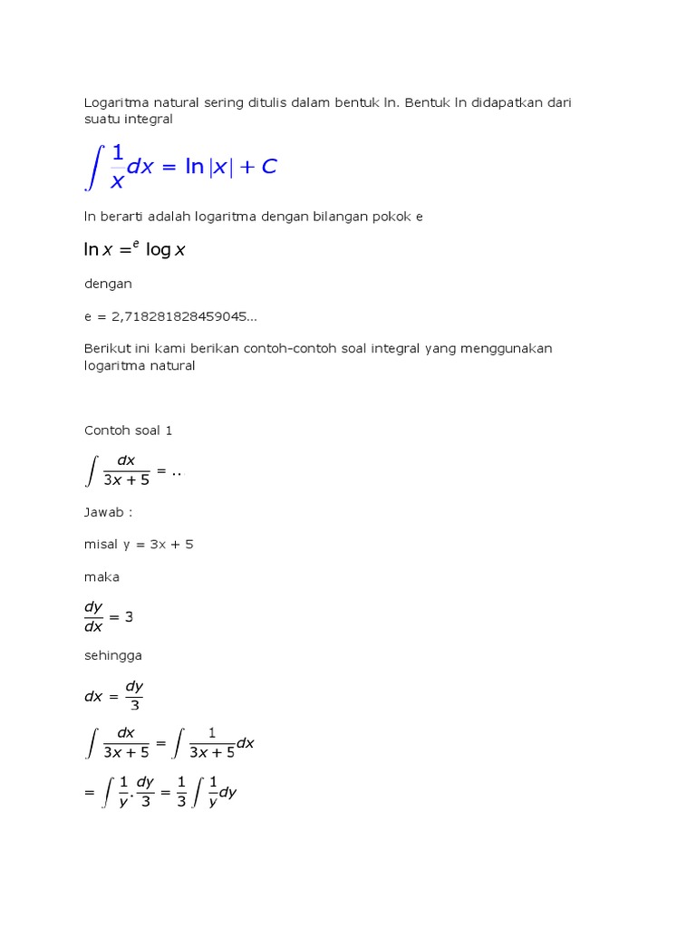 Contoh Soal Logaritma Natural Dan Penyelesaiannya - Contoh ... from sumberpengertian.id Bedanya logaritma natural dengan logaritma yang dinotasikan dengan log adalah terletak pada basisnya. Logaritma merupakan invers atau kebalikan dari pemangkatan. Ada contoh soal latihan logaritma yang bisa kamu kerjakan di sini. Definisi logaritma natural dari a diperoleh melalui integral dengan batas 1,a untuk fungsi 1/x yang berarti juga luas daerah di bawah kurva 1/x pada selang 1 contoh soal dan pembahasan. Postingan ini membahas contoh soal logaritma dan pembahasannya atau penyelesaiannya + jawaban. Berikut ini akan di berikan lima contoh soal tentang terapan turunan (masalah pengoptimuman), juga diberikan penyelesaiannya. Y = ²log x → y' = 1/x. .turunan logaritma lainnya seperti turunan fungsi natural, turunan fungsi nilai euler dan logaritma natural.