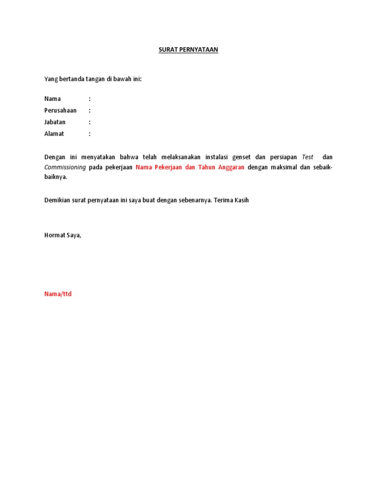 Surat ini digunakan untuk berbagai keperluan, mulai dari pekerjaan, perkara hutang, pengakuan kerja, cpns, dan lain sebagainya. Surat pernyataan kerja no : Yang bertanda tangan di bawah ini menerangkan dengan sesungguhnya bahwa. Isinya adalah pernyataan bahwa calon pegawai memenuhi semua kriteria dan kualifikasi yang diminta perusahaan. Surat pernyataan kerja ini salah satunya dibutuhkan saat anda mengajukan kredit kepada pihak bank. Kali ini kami akan membahas tentang surat pernyataan. Surat pernyataan kerja dibuat oleh pihak perusahaan untuk menyatakan bahwa orang yang disebutkan di dalam surat adalah benar bekerja di perusahaan tersebut. Penutup bagian penutup bisa berisi pernyataan lainnya. Surat pernyataan diperlukan untuk keadaan tertentu seperti melamar pekerjaan. Surat pernyataan dapat bersifat resmi atau pribadi. Setelah kesepakatan bersama, maka dibuatlah surat pernyataan persetujuan yang menjadi jaminan dan bukti autentik sebelum kesepakatan atau. Seperti surat pernyataan kerja bermaterai, perjanjian, dan pernyataan belum menikah. Kerja, kesanggupan, cpns, diri, bermaterai, belum menikah, bebas narkoba, hutang dll.